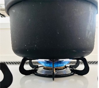 コンロにお鍋をセットしたら、点火して、火力を調整します。